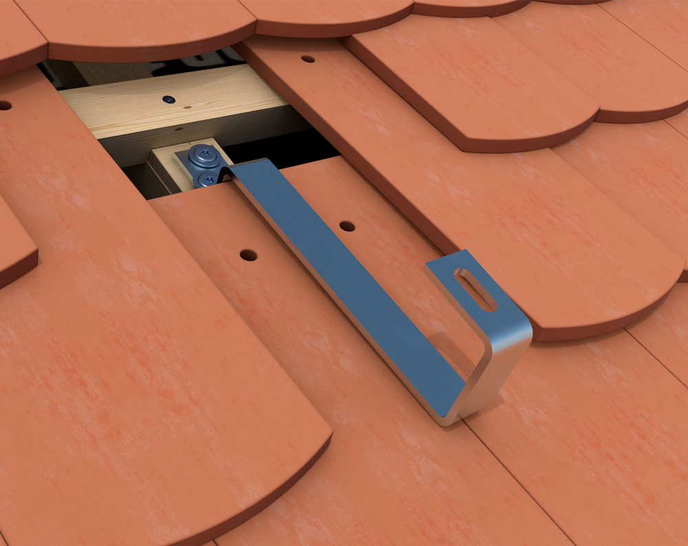 Der Dachhaken Biberschwanz von Eurotec dient zur Montage von Solarpaneelen in Kombination mit den Montageprofilen Steildach auf Dächern mit Biberschwanzziegel. Für die Befestigung des Montageprofils auf den Dachhaken eignen sich die Eurotec Hammerkopfschrauben in Verbindung mit den Sperrzahnmuttern.
