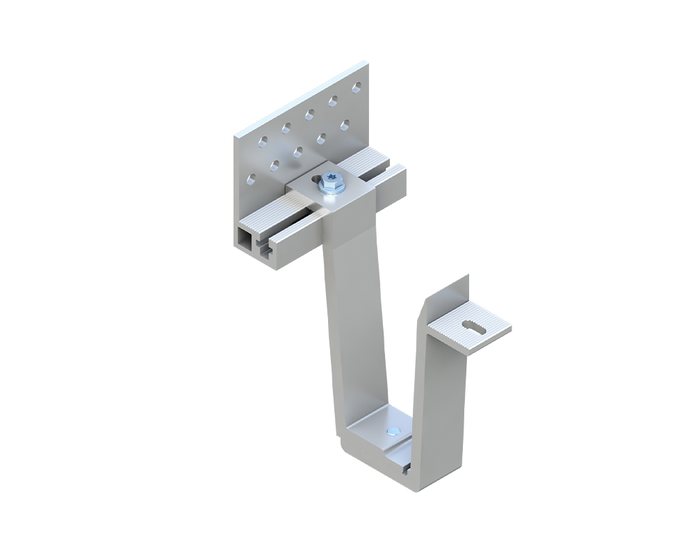 Der Dachhaken FIX-FIT V3 VARIO HEAVY von Eurotec wurde speziell für die Anbringung von Solarpanelen auf Steildächern entwickelt, wobei er in Verbindung mit dem Montageprofil FIX-FIT verwendet wird. Aufgrund seiner erhöhten Materialstärke eignet er sich besonders gut für Gebiete, die starken Schnee- und Windbelastungen ausgesetzt sind. Ein charakteristisches Merkmal dieses Modells ist das Langloch, welches eine variable Einstellung der Aufbauhöhe ermöglicht, um eine optimale Anpassung an die Dachziegel und die darunterliegende Traglattung zu gewährleisten. Darüber hinaus bietet die Möglichkeit zur stufenlosen, seitlichen Verstellung des Hakens eine einfache Ausrichtung und Befestigung an der Konterlattung. Die zusätzliche Verstellbarkeit der Aufbauhöhe durch das Langloch an der Fußplatte erhöht die Flexibilität und Anpassungsfähigkeit des Systems weiter. Der Dachhaken kann in Kombination mit dem Montageprofil Steildach SLIM verwendet werden. Für die Befestigung benötigen Sie dann die M8 Hammerkopfschraube und Sperrzahnmutter.