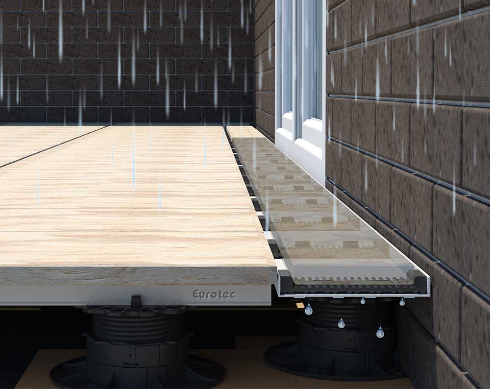 Der Eurotec DrainTec Adapter ist ein zusätzlicher Aufsatz für die DrainTec Base. Anstelle des DrainTec Drainagerosts ist es mithilfe des Adapters möglich, eine weitere Steinplatte auf der DrainTec Base zu verlegen. Der Adapter lässt sich fest auf die DrainTec Base stecken.