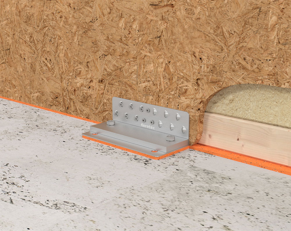 Bei einer Verankerung am Betonbauteil muss der Scherwinkel HB flach durch die Druckplatte Scherwinkel HB flach ergänzt werden. In Kombination mit der Druckplatte können bei einer Befestigung im Beton zusätzlich Zugkräfte aufgenommen werden.