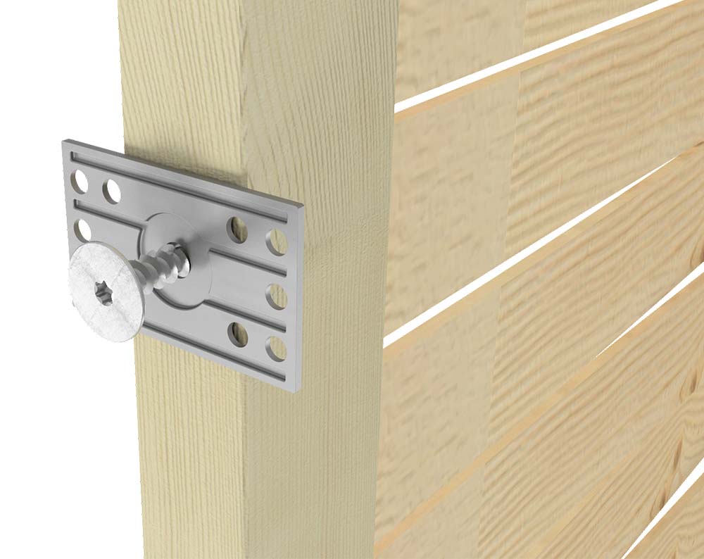 Ein Set beinhaltet 4 x Beschläge (A2) + 16 x ClickyFix + 4 x Flechtzaunschrauben