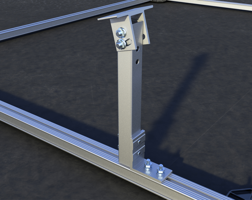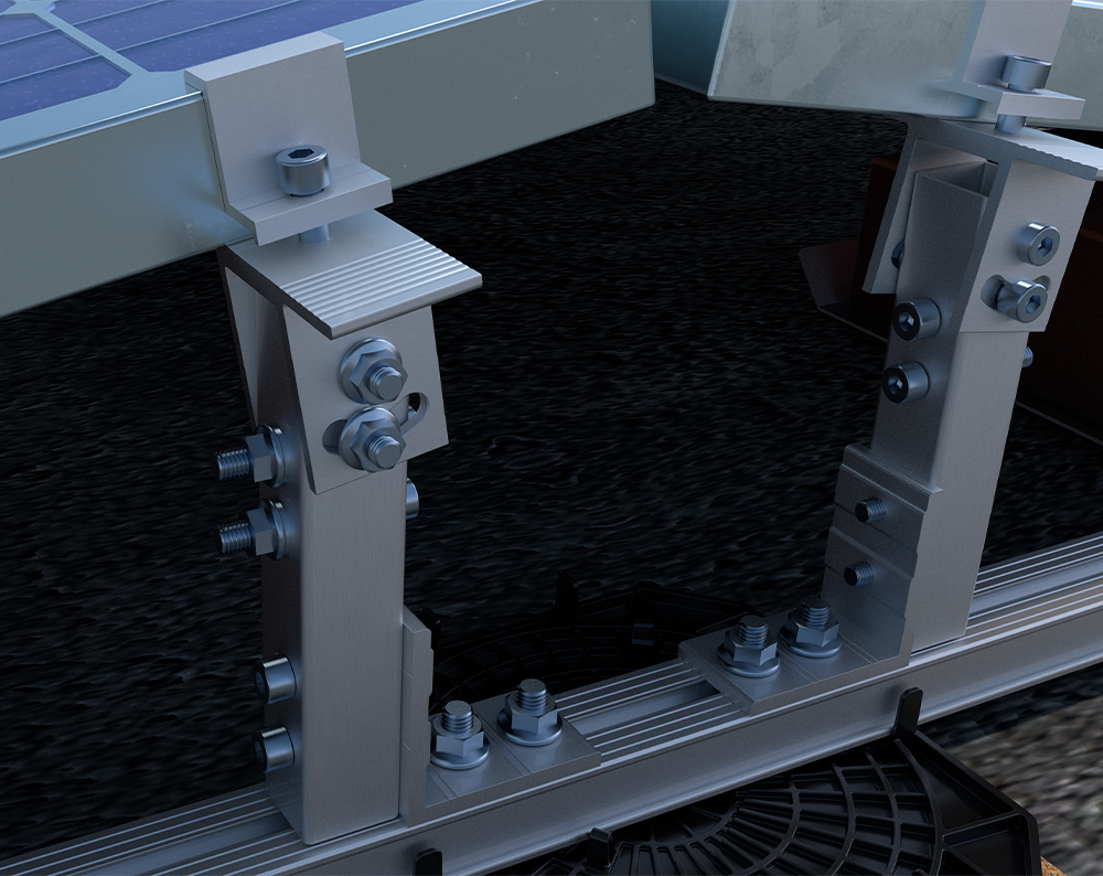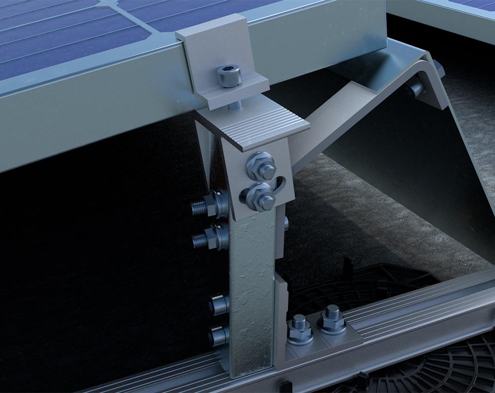 Auf dem Gelenk für Modulaufständerung hinten können die Solarpaneele individuell auf dem Montageprofil befestigt werden.