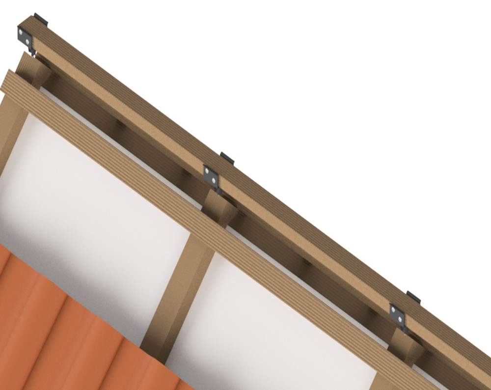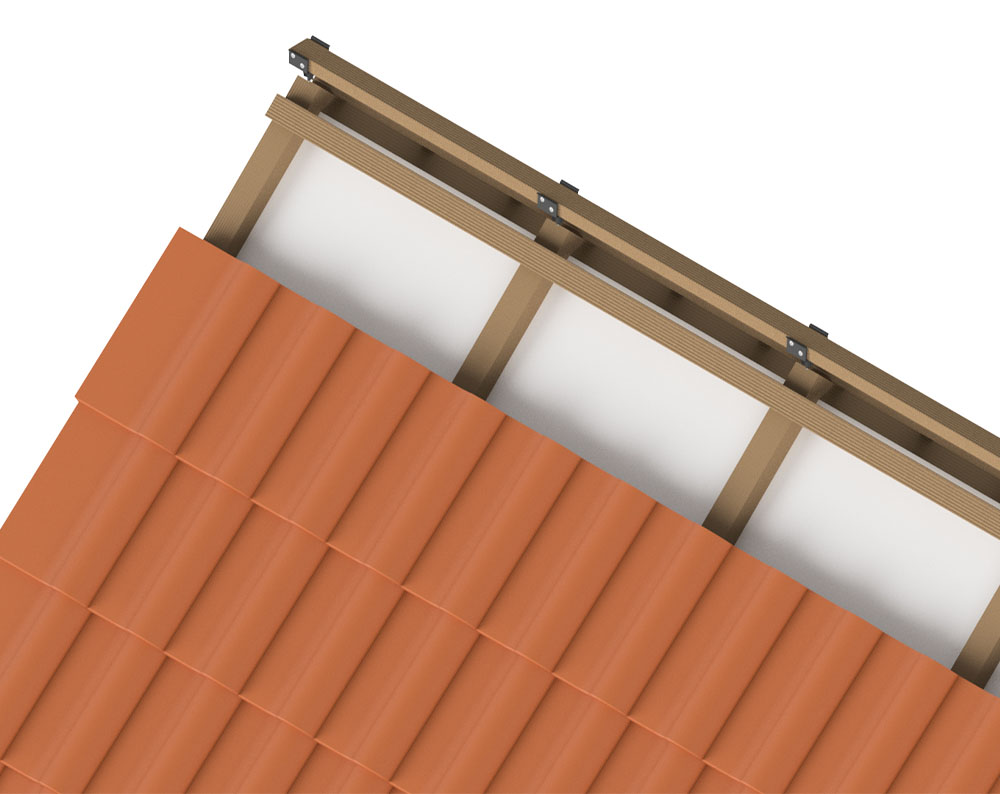 - Befestigung mit Ø 6 mm Senkkopfschraube im Sparren (Einbindetiefe mind. 50 mm)