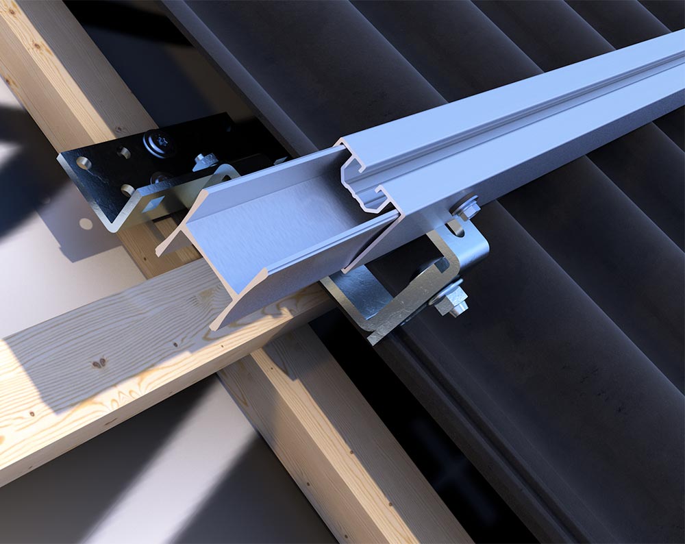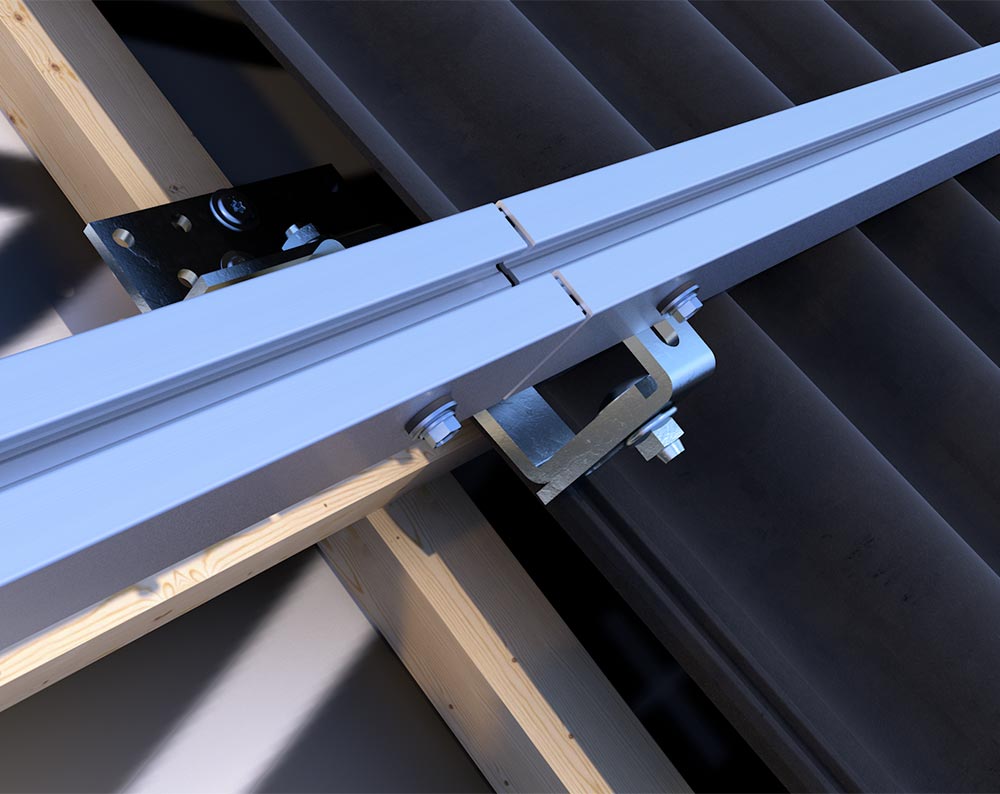 Mithilfe des H-Profilverbinders von Eurotec werden mehrere einzelne Solar Montageprofile miteinander verbunden. Hierfür wird der Verbinder in das jeweilige Ende der Montageprofile gesetzt und anschließend mit Schrauben befestigt. Für die Montage empfehlen wir die Verwendung der BiGHTY 5,5 x 19 mm Schrauben.