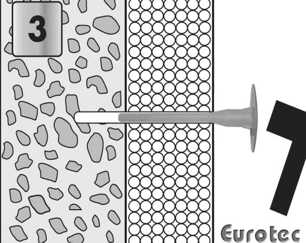 Mithilfe des Klimax Dämmstoffdübels lassen sich WDVS-Dämmstoffplatten in den Stärken 40 – 210 mm sicher an der Wand befestigen. Der Dämmstoffdübel eignet sich für Verankerungen in Kalksandvollstein, Kalksandlochstein, Mauerziegel, Hochlochziegel, Leichtbetonvollblock und Leichtbetonhohlblock. Das Produkt besteht aus einem Kunststoffdübel und einem Nagel aus galvanisch verzinktem Stahl mit einem aufgepressten Kunststoffkopf. Der Kunststoffkopf vermindert die Bildung von Wärmebrücken und dient außerdem dem zusätzlichen Korrosionsschutz.