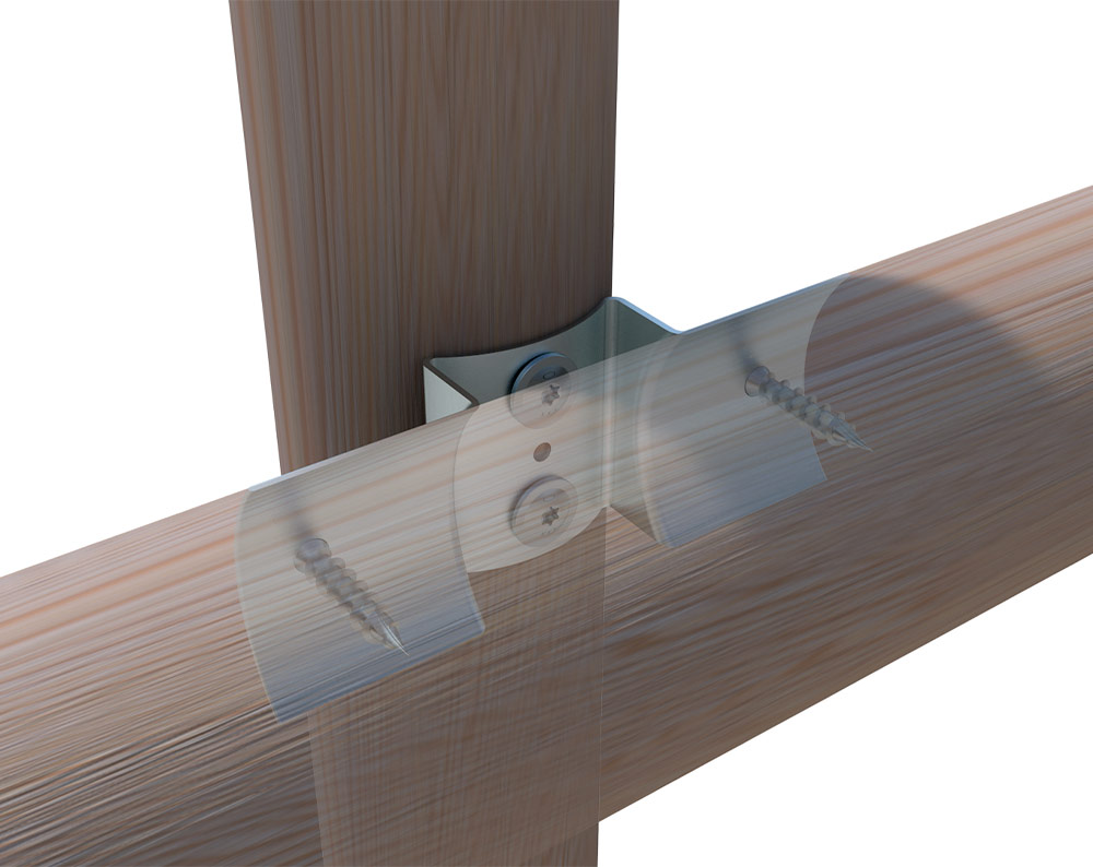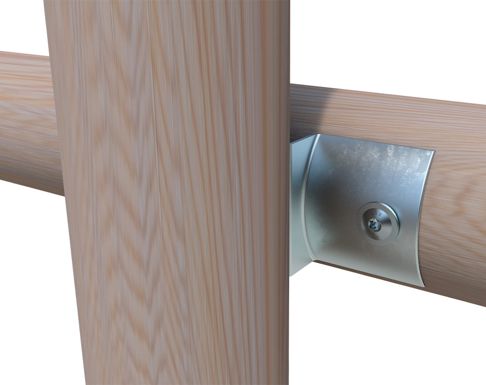 Mithilfe des Rundholzverbinders von Eurotec können Rundhölzer miteinander verbunden werden. Dank seiner speziell gekrümmten Form kann der Verbinder flexibel eingesetzt werden.