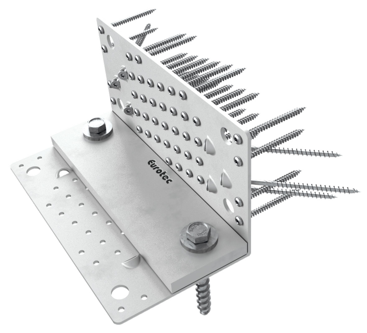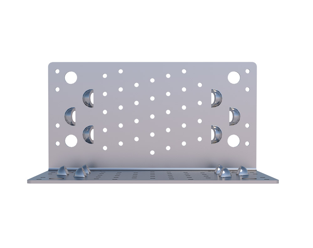 Zur Verankerung im Holz sind pro Schenkel 6 Schrägverschraubungslöcher und 41 Löcher die wahlweise für Winkelbeschlagschrauben (WBS) oder Ankernägel vorgesehen sind.