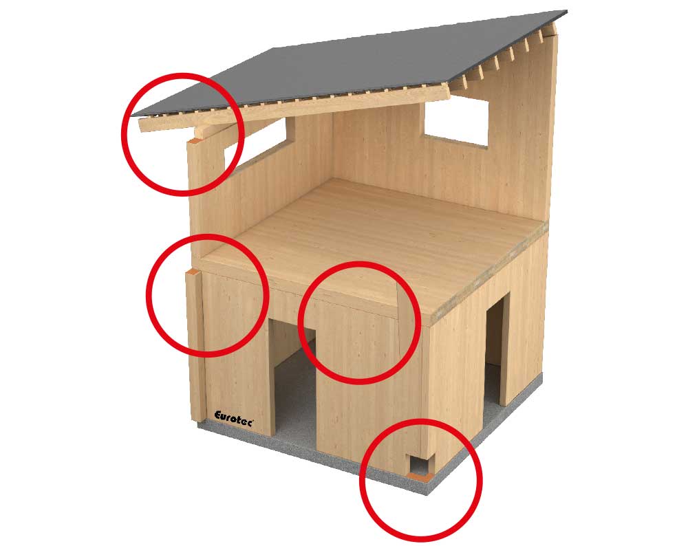 Hierzu empfehlen wir unseren Eurotec Hammertacker sowie unsere Hammertacker Klammern ab 10 mm Länge. Aufgrund des geringen Durchmessers der Klammern sind diese als Schallbrücken nicht anzusehen. Die jeweiligen aufzunehmenden Lasten müssen durch einen Tragwerksplaner oder Statiker bestimmt werden.