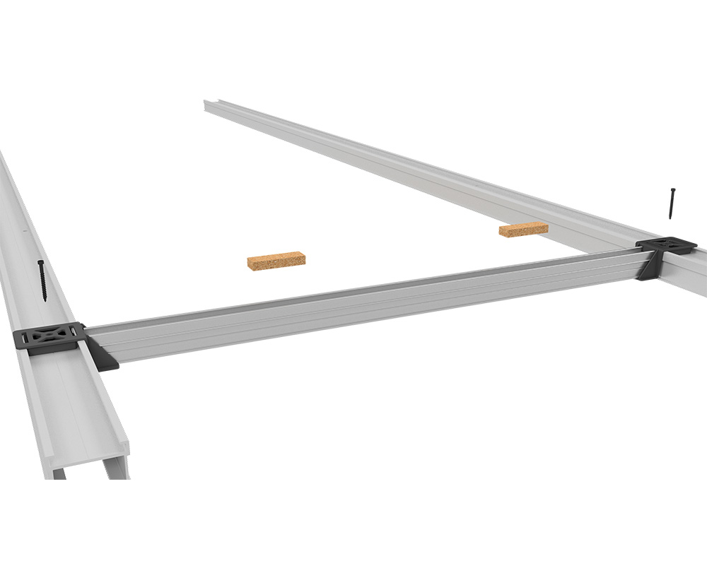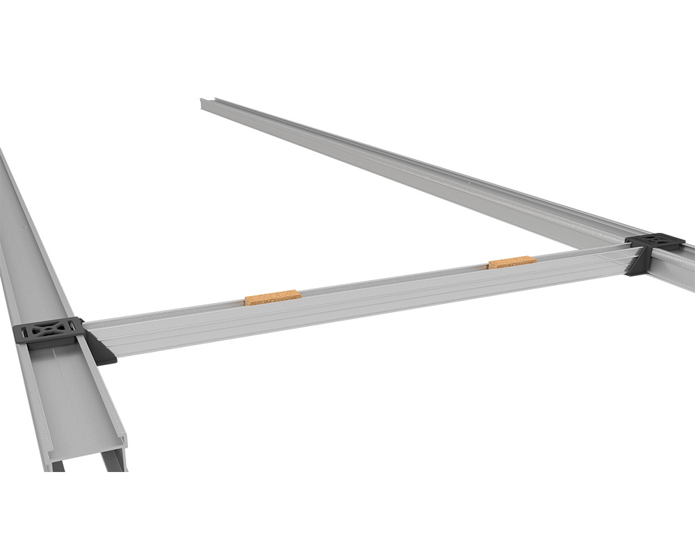 - Durch den Support-Clip können sowohl Verstellfüße als auch Alu-Systemprofile EVO eingespart werden