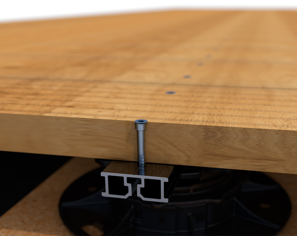 Werden die Profile in Kombination mit Produkten zur nicht sichtbaren Dielenbefestigung verwendet, sollten diese mit dem Schraubkanal nach oben gedreht werden.