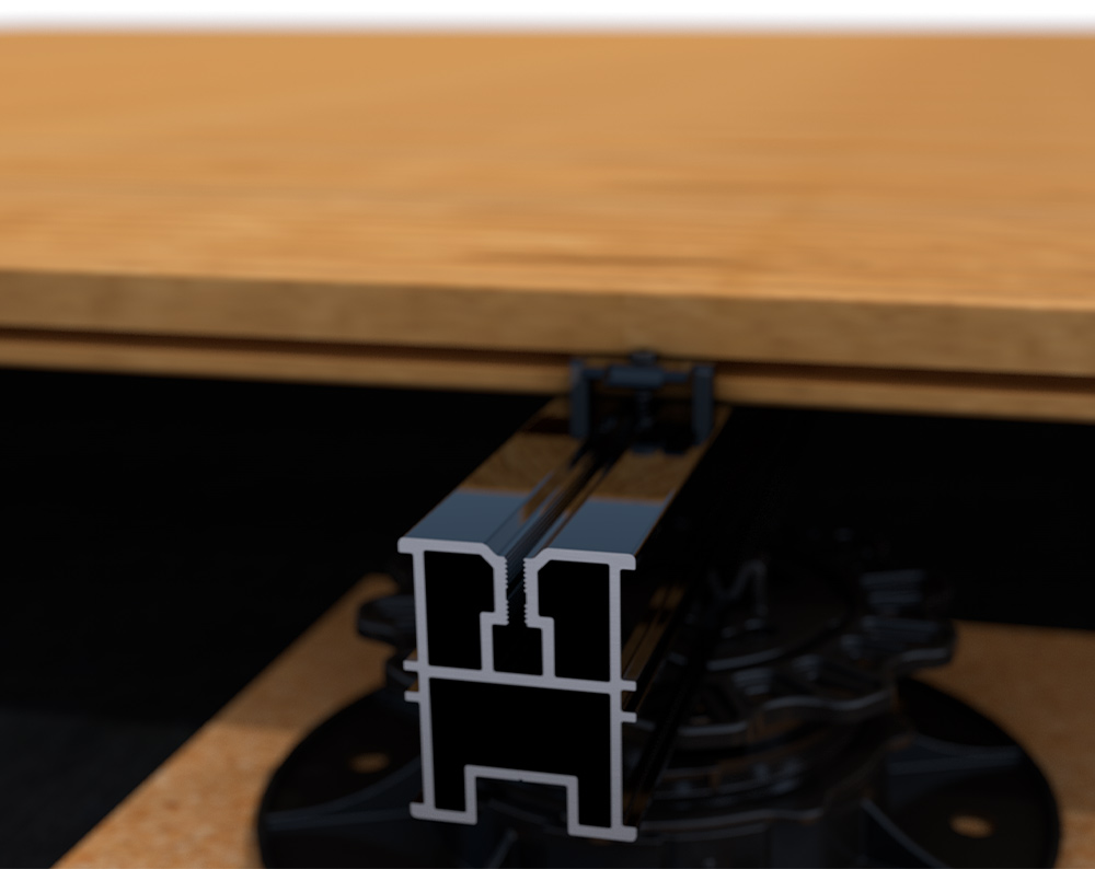 Werden die Profile in Kombination mit Produkten zur nicht sichtbaren Dielenbefestigung verwendet, sollten diese mit dem Schraubkanal nach oben gedreht werden.