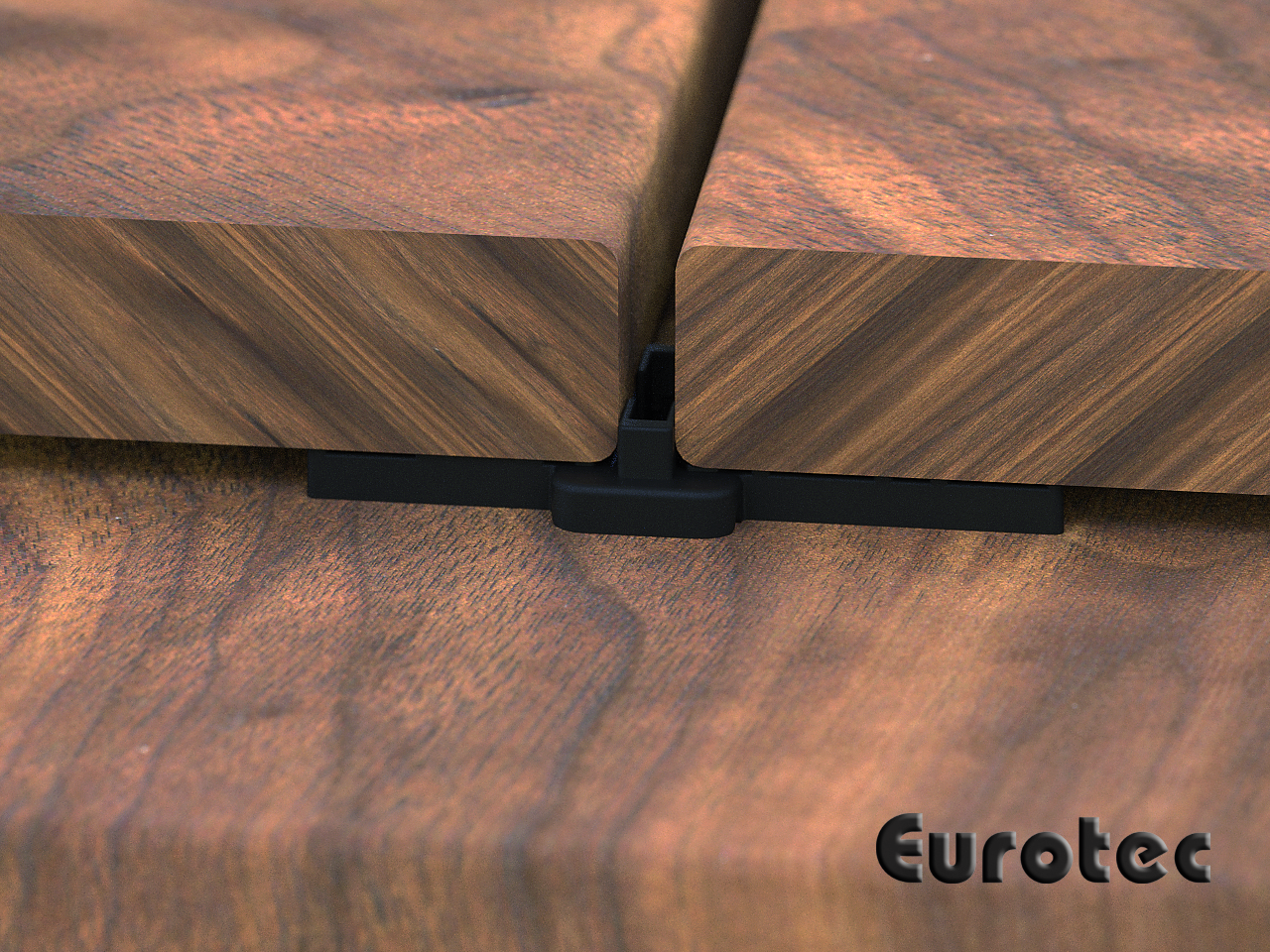 Sollen Terrassendielen direkt, also sichtbar verschraubt werden, dient der Tenax zur Unterlage als Distanzhalter zur Vermeidung von Staunässe in der Fuge. Durch das Auflegen der Dielen wird gleichzeitig der Fugenabstand von 6 mm und der Abstand zur Unterkonstruktion eingestellt.