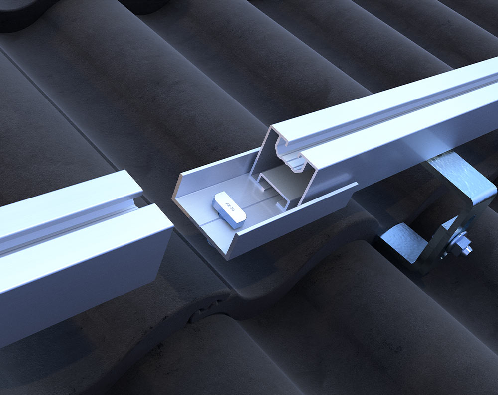 Der U-Profilverbinder besteht aus Aluminium und dient der Verbindung mehrerer einzelner Montageprofile Steildach. Der Verbinder wird unter das jeweilige Ende von zwei Montageprofilen gesteckt und mittels Hammerkopfschraube sowie Sperrzahnmutter befestigt.