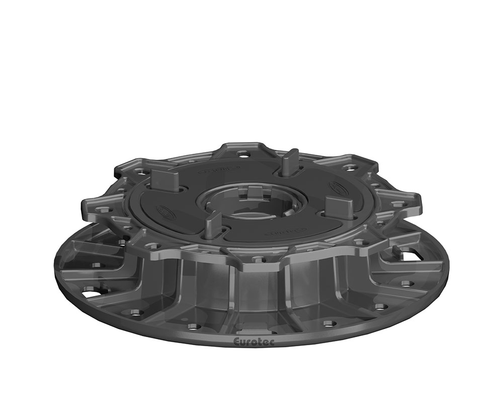 Die Verstellfüße GIANT von Eurotec eignen sich gezielt für die Einzelauflagerung von schweren, großformatigen Steinplatten oder Keramikfliesen. Die Reihe hat vier Varianten zu bieten, welche alle über einen stufenlos justierbaren Bereich von 40 bis 220 mm verfügen. Die Aufbauhöhe lässt sich mit dem Erweiterungsring GIANT um weitere 170 mm erhöhen.